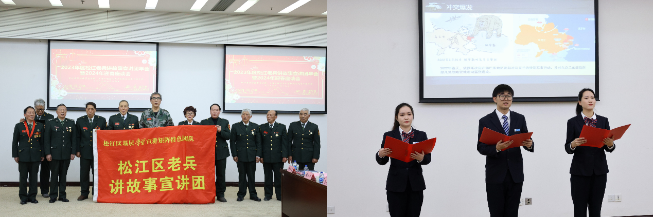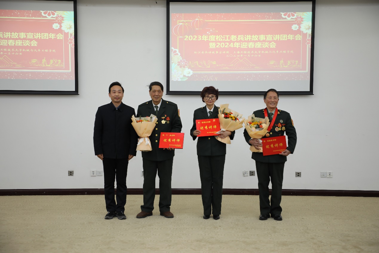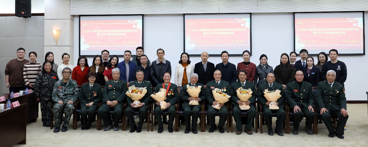 1月16日下午,2023年度松江老兵讲故事宣讲团年会暨2024年迎春座谈会在上海工程技术大学图文信息中心第三报告厅举行。参加本次会议的有区委宣传部、区委老干部局、区退役军人事务局、共青团松江区委、上海慈善基金会松江代表处、永丰街道党建办、岳阳街道党建办、区融媒体中心、上海工程技术大学党委宣传部、开云kaiyun官网、上海对外经贸大学工商管理学院、松江自来水公司工人宣讲团、松江老兵讲故事宣讲团。会议由松江老兵讲故事宣讲团志愿者胡明子、马伟民老兵共同主持。