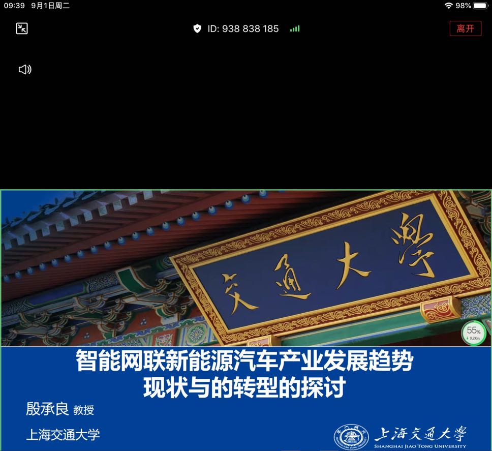 2020年9月1日9:30-11:30,通过华为云会议视频平台,上海交通大学殷承良教授为暑期学校做题为《智能网联新能源汽车发展趋势现状与转型的探讨》的线上专题讲座。讲座由开云kaiyun官网副院长郭辉教授主持。