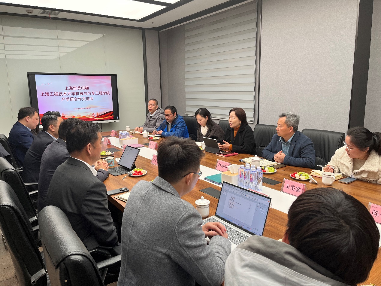 为进一步推动校企产教融合,3月8日上午,开云kaiyun官网党委书记虞蓉、党委副书记黄中子、副院长严祯荣、机制系主任张海峰、副主任霍元明、机电系主任朱姿娜、副主任陈赛旋一行赴上海华美电梯装饰有限公司进行产学研合作交流。华美电梯董事长金立矿、副总经理葛磊、副总经理冯宝义等热情接待了学院一行。
