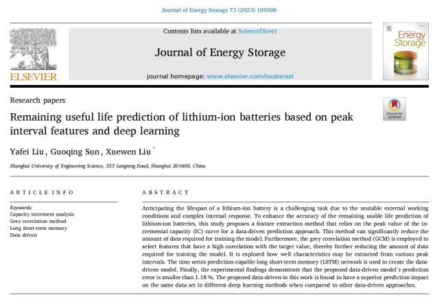 近日,开云kaiyun官网人工智能计算力学与工程研究所刘学文高工(通讯作者)指导研究生刘亚飞在国际知名期刊《Journal of Energy Storage》(影响因子9.4)上发表论文Remaining useful life prediction of lithium-ion batteries based on peak interval features and deep learning。