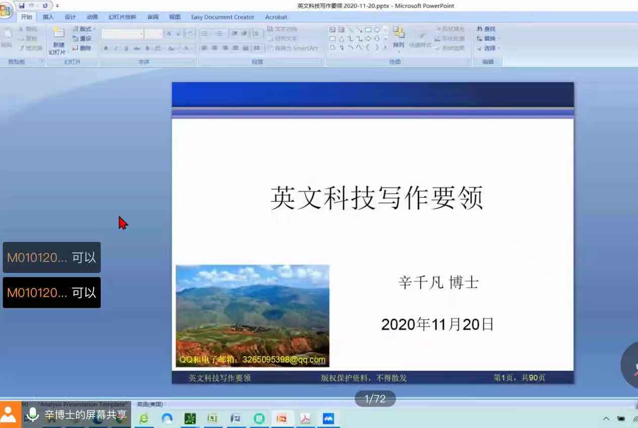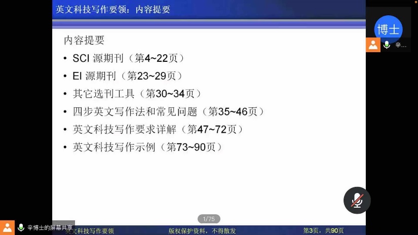 为了提高研究生英文科技写作能力,帮助其发表高水平英文论文、增强国际交流能力,2020年11月20日上午,我院诚邀2020年上海工程技术大学海外名师项目获得者辛千凡教授线上开展题为“Key Techniques of English Scientific Writing(英文科技写作要领)”的主题讲座,有近300名研究生参与讲座。辛教授于美国华盛顿大学获得机械工程硕士、博士学位,现担任美国HXK技术公司主管,英文底蕴深厚,写作技巧精湛。