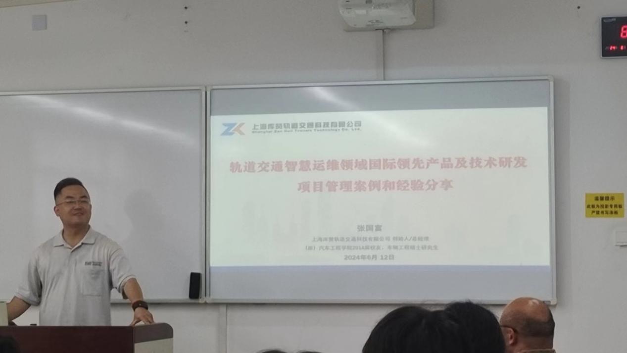 为进一步深化教育教学改革,全面推进产学深度融合,贯彻落实“校企协同育人”的模式。 6月12日,我院优秀毕业生、上海库赞轨道交通科技有限公司张国富总经理,在学院方宇教授的邀请下在智能制造项目管理课上为21级智能制造工程专业学生作《轨道交通智慧运输领域国际领先产品及技术研发项目管理案例和经验分享》课程讲授。