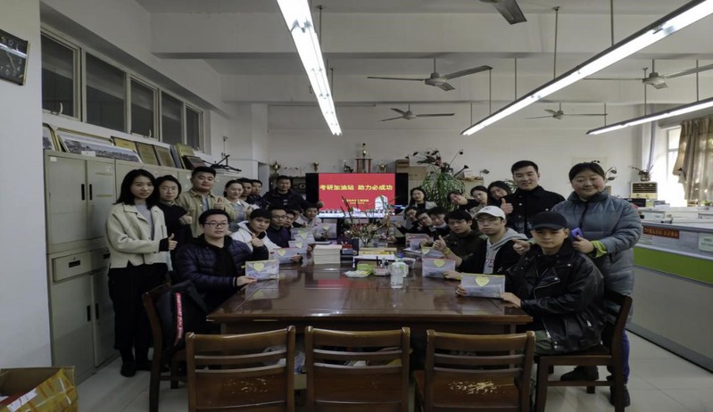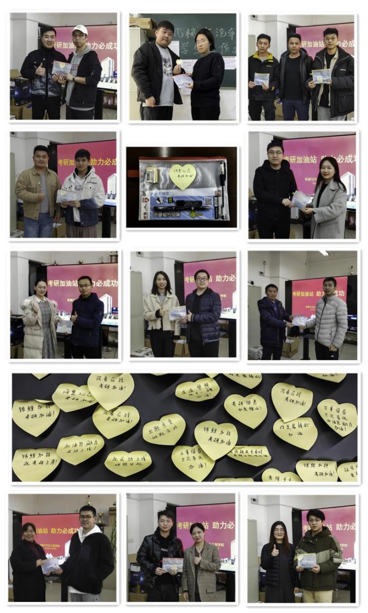 良言一句三冬暖。王书记叮嘱全体考研同学在最后阶段要稳定心态,按部就班的复习,同时也要保证良好的作息规律,注意饮食,并在考前做好相关用品的准备工作,特别是在疫情未停的特殊时期,做到有备无患;在备战研究生考试的最后几天里,学院领导、辅导员老师一定会全力做好同学们生活、学习、心理等全方面的后勤支持和保障工作,确保同学们以最好的状态应对考试。王书记预祝同学们旗开得胜,金榜题名!毕业班辅导员老师们为考研学子送上“考研加油包”。“考研加油包”寓意丰富、情意满满,加油包里准备了笔袋、黑色中性笔等考试品。“执笔为剑,披荆斩棘”,愿你们合上笔帽的那一刻,像胜利的勇士骄傲地收刀入鞘。另外,每一份加油礼包都是独一无二的,老师们将对每一位考研学子的殷切希望和满满的爱意写在祝福小卡片上,尺牍有情,相信老师们的真情实感和贴心叮咛能为考研学子们带来更充足的信心。