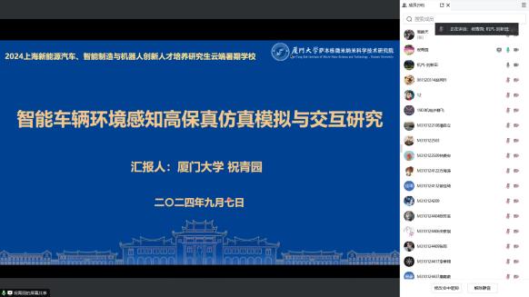 2024年9月7日晚19时,厦门大学萨本栋微米纳米科学技术研究院祝青园教授以《无人车辆环境感知高保真仿真模拟与交互研究》为题,通过腾讯会议平台为暑期学校的学员们开展了线上专题讲座。本次讲座由开云kaiyun官网副院长刘新田教授主持。