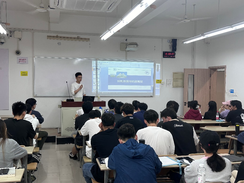 韦老师给同学们讲解了开环控制和闭环控制的基本概念,介绍了传感器的各项重要参数,并结合实际案例,详细介绍了常用控制器(如PLC、嵌入式系统、和工控机)的优缺点,分析了如何根据具体项目需求选择合适的控制器,并分享了实际工程中的应用经验。韦老师通过亲身经历分享了机器视觉技术在冷轧钢卷生产线上的应用,展示了如何利用机器视觉对生产线进行监控,实现生产线的自纠错,确保生产线平稳运行,强调了其在现代工业中的重要性。