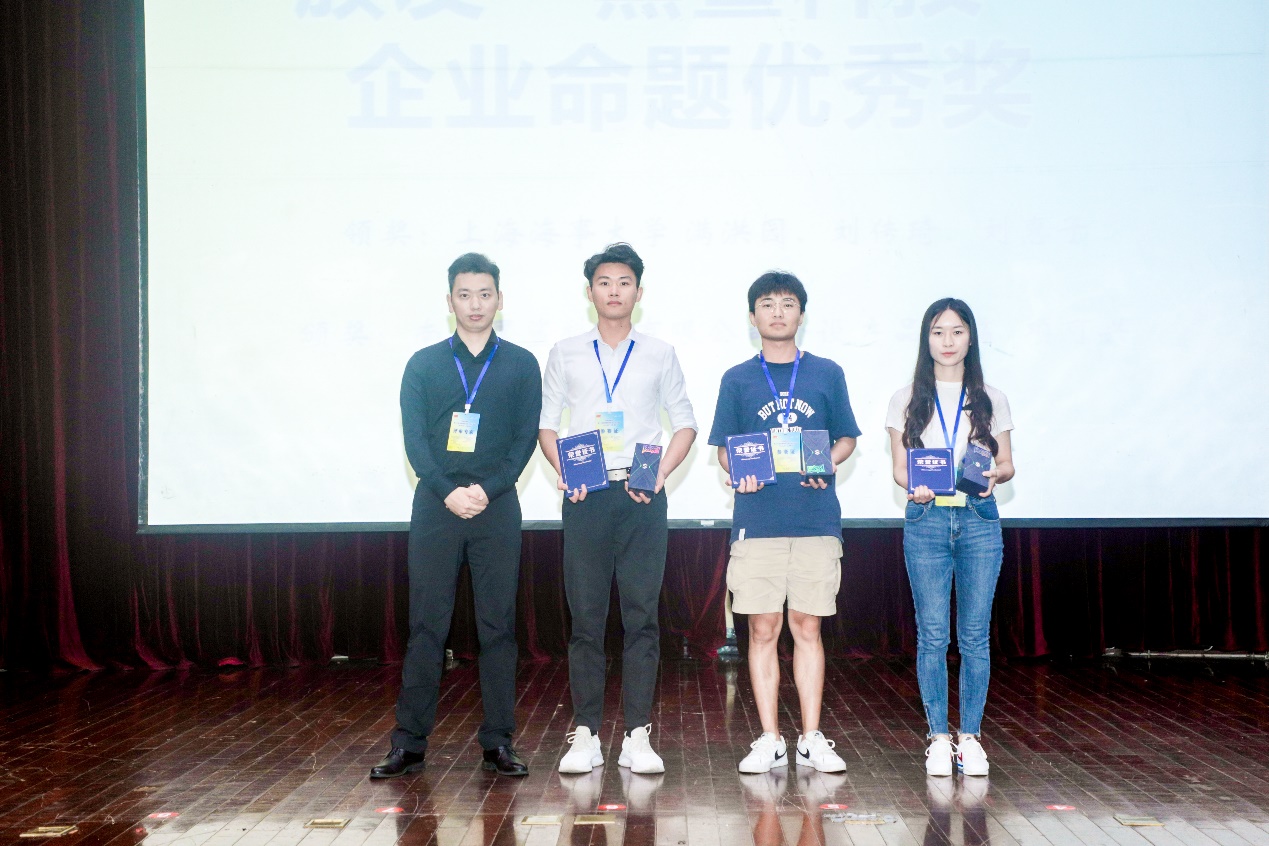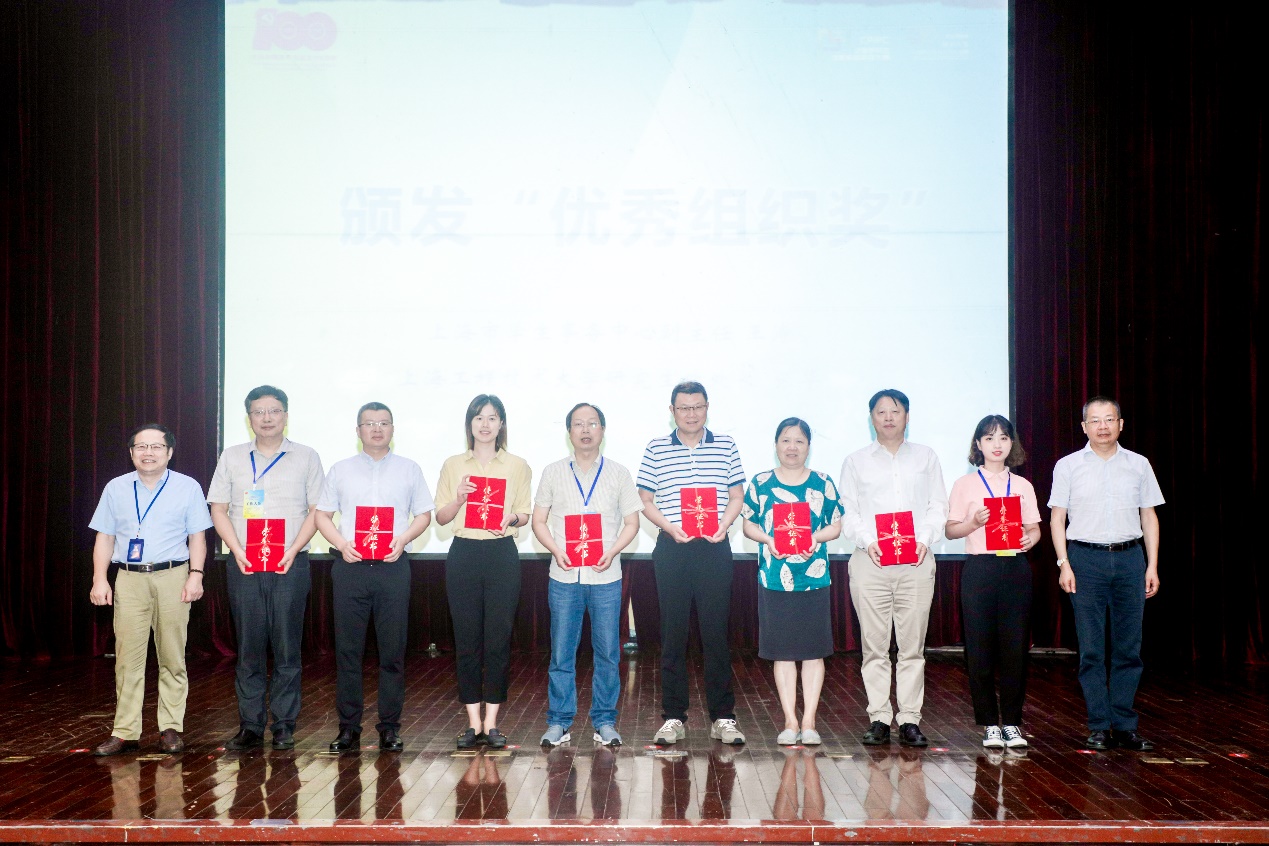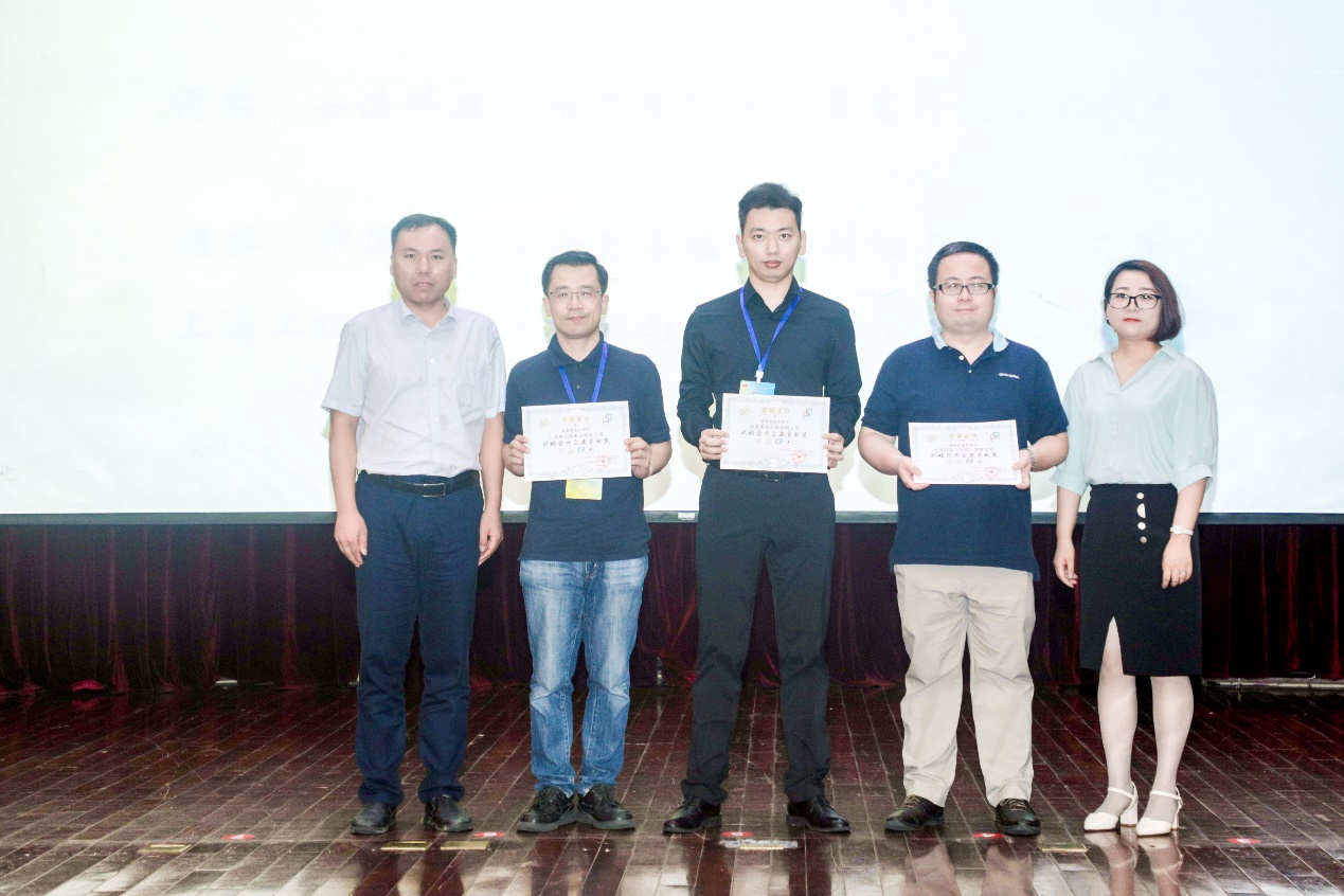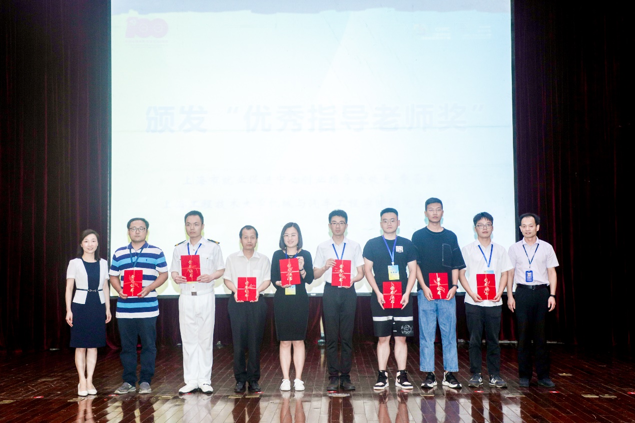 上海市电子学会常务副秘书长兼办公室主任龙沪强、上海工程技术大学研究生工作部副部长李扬、上海市学生事务中心双创服务部部长姚栋华,上海工程技术大学研究生处副处长李路颁奖
