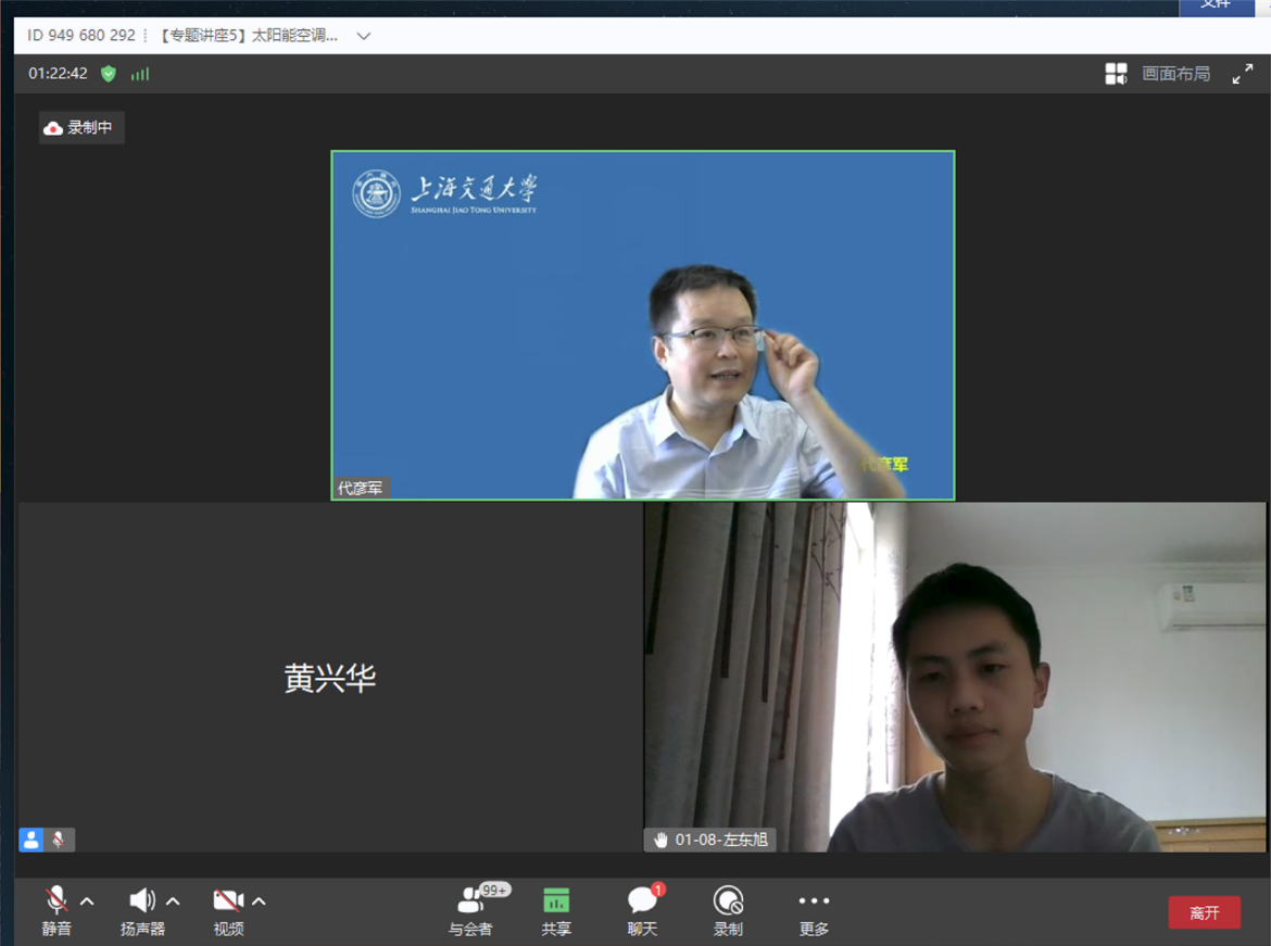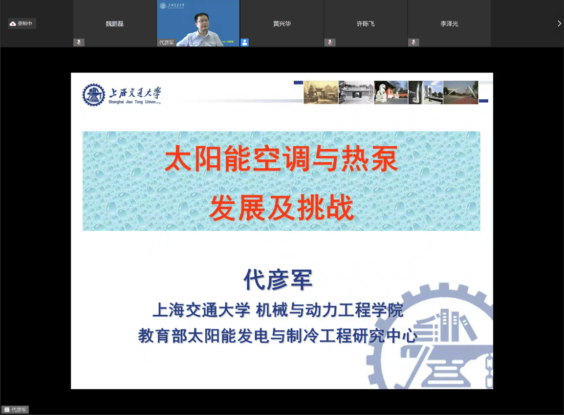 2021年8月30日9:00-11:00,通过华为云会议视频平台,上海交通大学教授代彦军为暑期学校做题为《太阳能空调与热泵技术发展与挑战》的线上专题讲座。讲座由开云kaiyun官网副教授黄兴华主持。