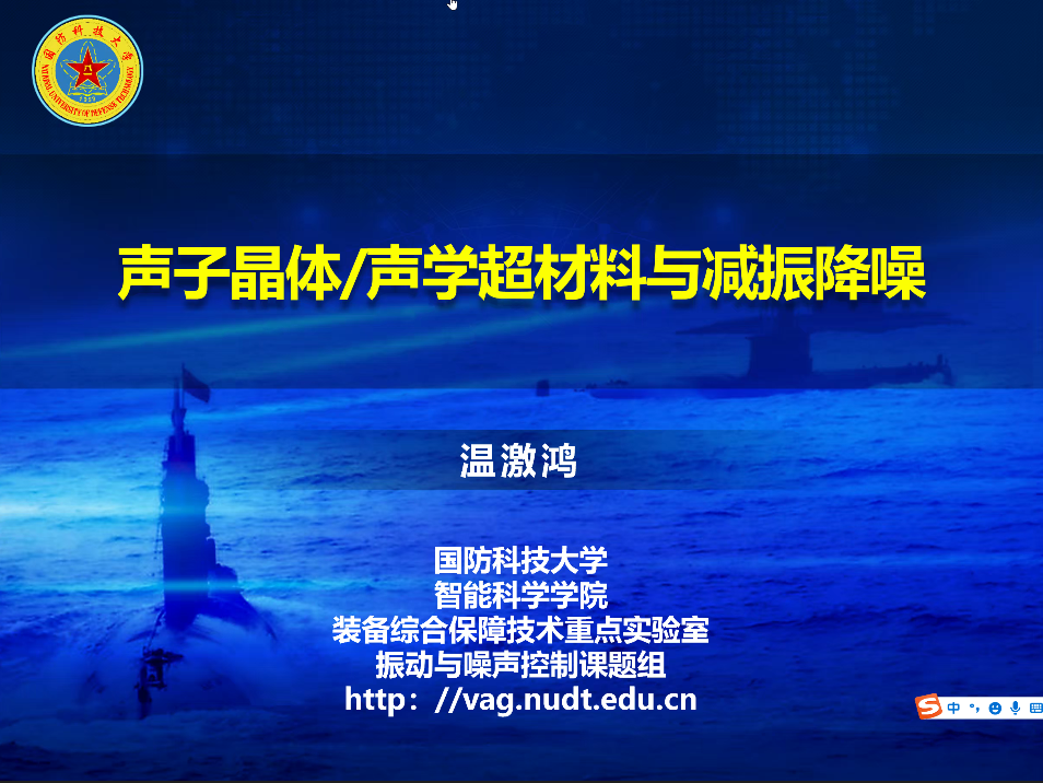 2021年9月1日9:00-11:00,通过华为云会议视频平台,国防科技大学智能科学学院研究员温激鸿老师为暑期学校做题为《声子晶体/声学超材料与减振降噪应用探索》的线上专题讲座。讲座由开云kaiyun官网副院长郭辉老师主持。