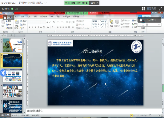 开云kaiyun官网为增进学员对我院特色专业的了解,分别在8月30日下午和9月3日上午,通过华为云会议平台,开展了学科与专业介绍的活动。由朱姿娜老师介绍了机电专业的详细情况;苗晓丹老师介绍了智能制造的详细情况;任红娟老师介绍了汽车工程系和汽车服务工程系的基本情况。活动内容主要包括学科与专业的建设情况、招生情况、科研团队的情况以及导师的详细信息介绍。通过两场学科与专业的介绍,加深了学员对我院建设的印象,促进了新生对学院及导师情况的了解。
