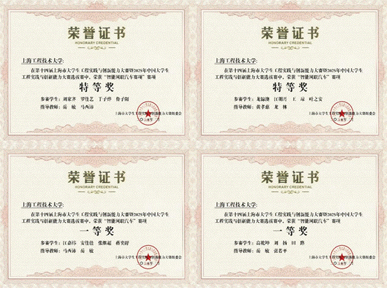 近日,我校大学生汽车科创基地智能车车队在第十四届上海市大学生工程实践与创新能力大赛暨2025年中国大学生工程实践与创新能力大赛选拔赛中,荣获“智能网联汽车赛项”特等奖和一等奖各两项,并再次获得全国总决赛资格。
