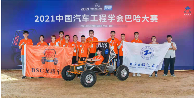 因为疫情影响,本届赛事推迟了1年半才得以顺利举行,我校龙腾巴哈车队40余名队员在汽车科创基地孙裴、张艳伟两位老师的指导下,不忘初心,不畏困难,不言放弃,利用寒、暑假和课余时间研究各项赛规、核算制造成本、优化设计方案;在赛车的设计、制造、装配、调试以及不断完善过程中,队员的工程设计能力、根据规范要求计算校核能力以及精益求精的精神得到充分锻炼;队员以车房为家,日夜奋战,最终实现了SUES 2021巴哈赛车顺利登上襄阳赛场。在赛场上,参赛队员齐心协力,不畏艰难,排解现场各种突发情况,最终顺利完成各项比赛。