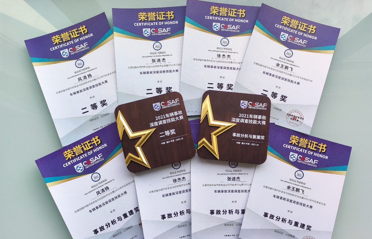 参赛期间参赛队员废寝忘食,认真准备比赛相关信息,仔细研究往届大赛的比赛细节,从中汲取经验和不足,同时不断地开发新的方法和技术路径,对比赛中的采集、事故重建、分析都形成了独有的方法体系。风清扬队三人通力合作,在现场采集、事故分析与重建、智能汽车事故数据分析等方面表现突出,连续奋战两天一夜,斩获两项大奖。通过此次大赛,队员学习到了很多专业前沿的方向,积累了很多宝贵的经验,开拓了创新的思维,增强了团队协作的能力;极大提升了学校在服务国家和行业的国内外影响力!