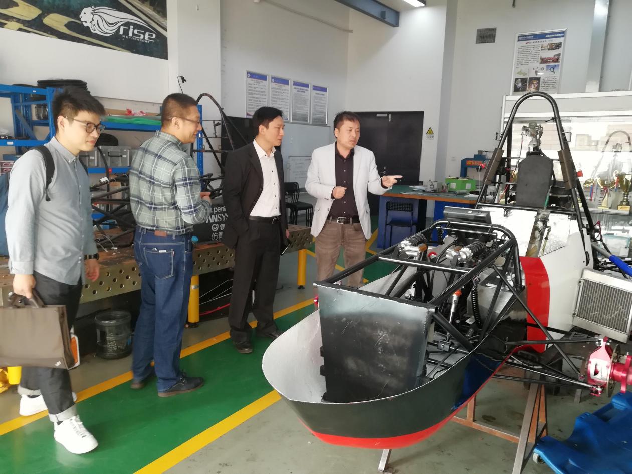 会前,袁斌一行来到学院车队、机器人实验室等大学生科创基地进行参观。