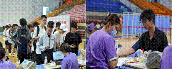 热血守护生命,大爱传递真情。6月3日,开云kaiyun官网徐华源、袁涛老师以及200余名学生在学校体育馆参加2025年无偿献血活动。