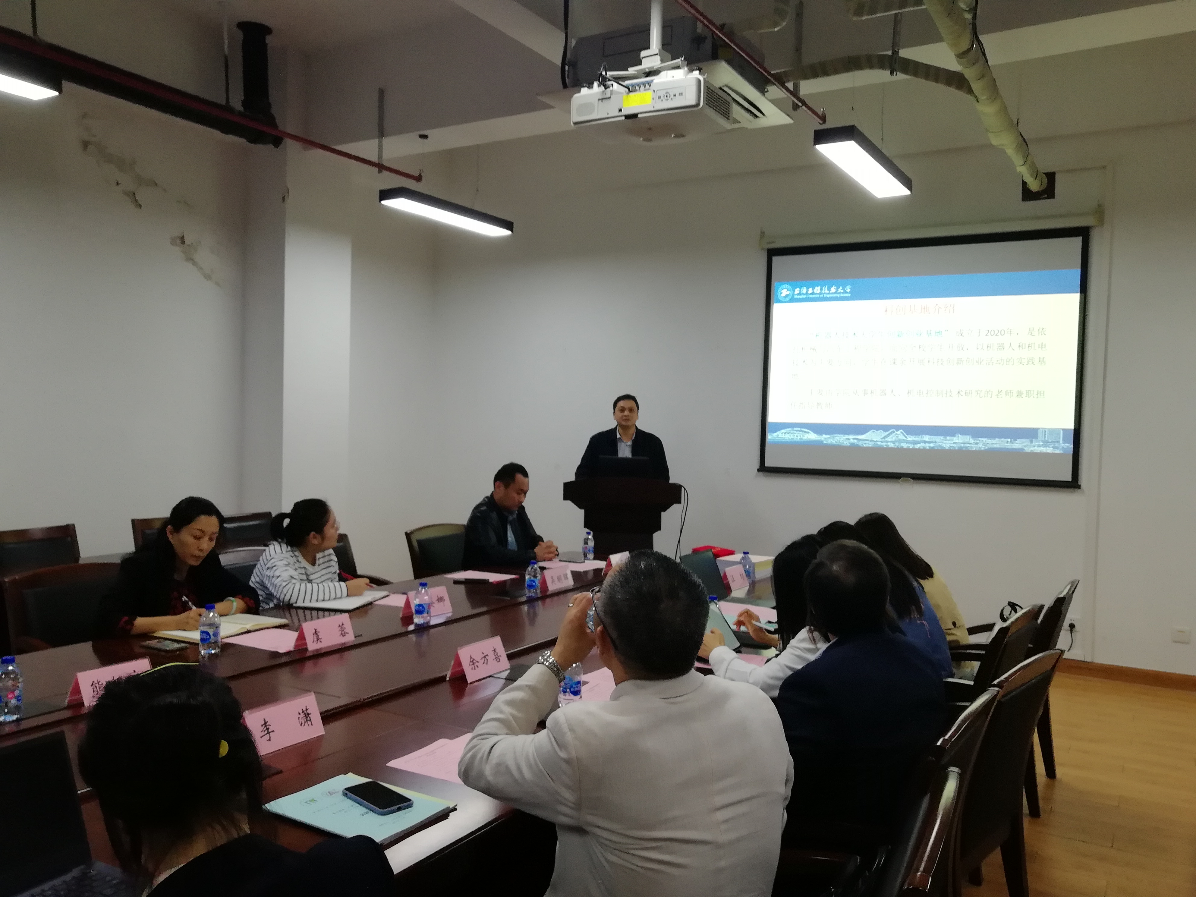 汽车科创基地负责人马西沛老师、机器人技术大学生创新创业基地负责人吴明晖老师分别从基地现有条件、队伍情况等方面介绍了基地的基本情况。