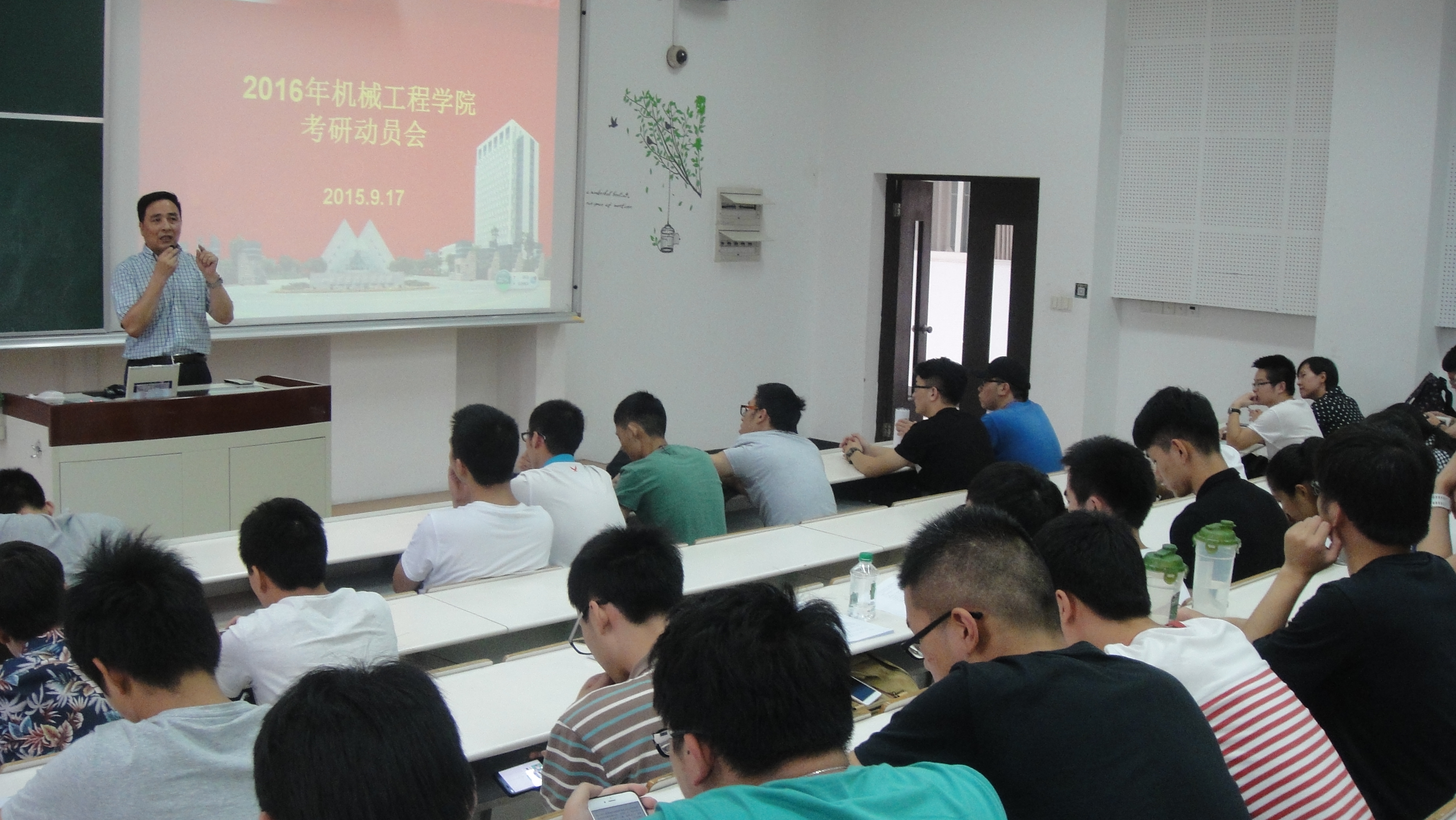 为鼓励学院本科生积极报考研究生,提高自身核心竞争力。9月17日下午,机械工程学院在教学楼C219举行了2016年考研动员会。机械工程学院院长程武山、副院长茅健、学院党委副书记梅元媛、研究生辅导员曹雅致、2012级辅导员汪文婷参加了本次会议。