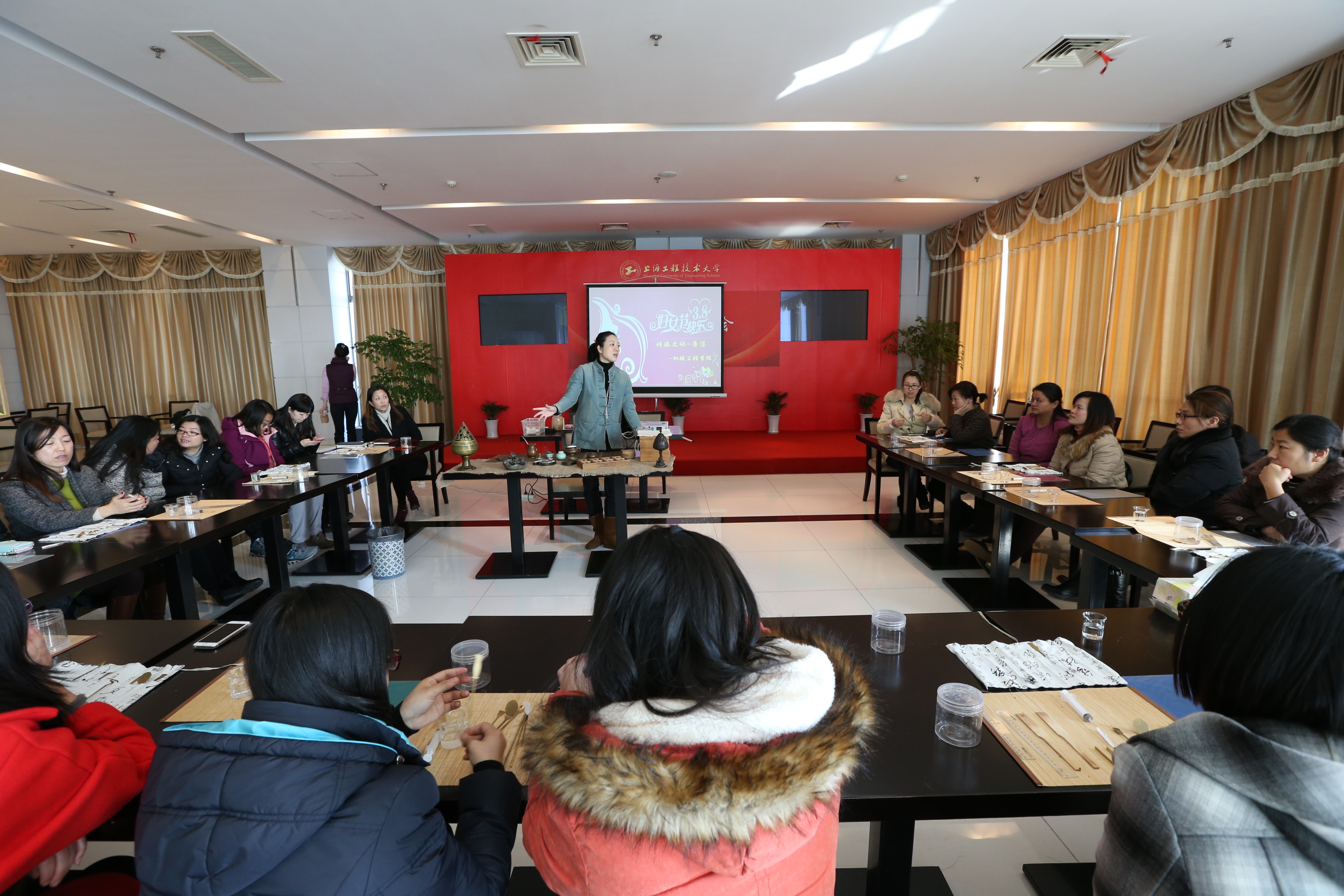 3月10日下午14:30,庆祝第105个三八国际妇女节之际,机械工程学院工会于行政楼19楼特邀长宁区青联委员、长宁区社区学校特聘教师洪晓,举办了传统文化——香道文化专题讲座,分享了一道中国传统文化大餐。