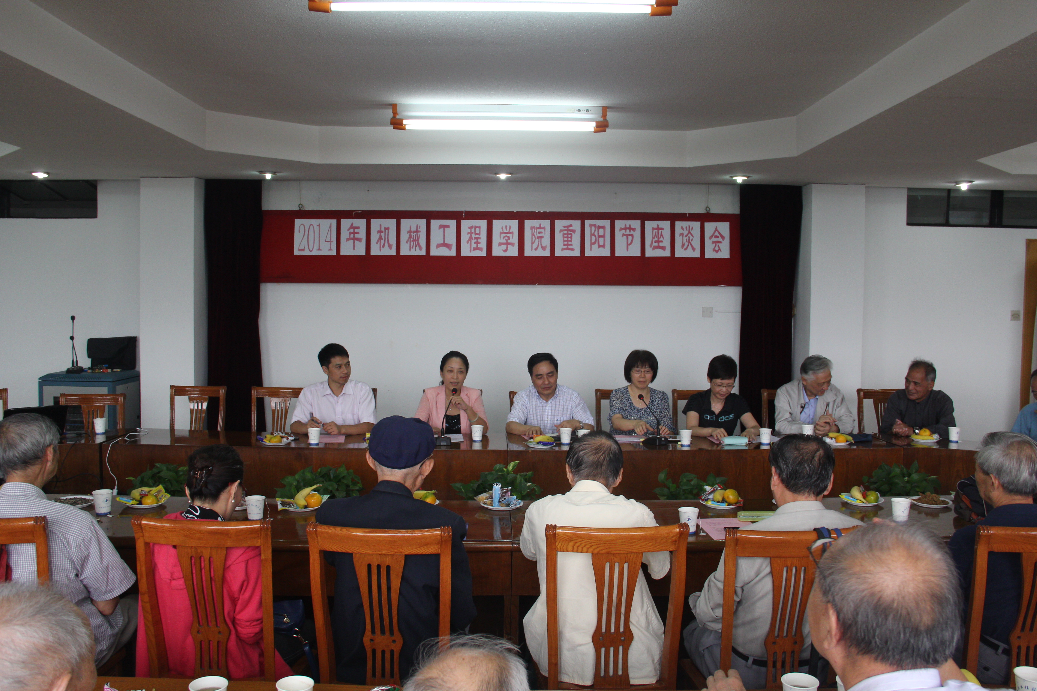 岁岁重阳,喜照吉祥。为大力弘扬尊老、敬老、爱老的中华民族传统美德,9月30日下午,机械工程学院在仙霞路校区725会议室举行2014年重阳节座谈会。院长程武山、学院党委书记虞蓉与学院的离退休教职工代表欢聚一堂,共庆国庆、重阳佳节。会议由学院工会主席周玉凤老师主持。