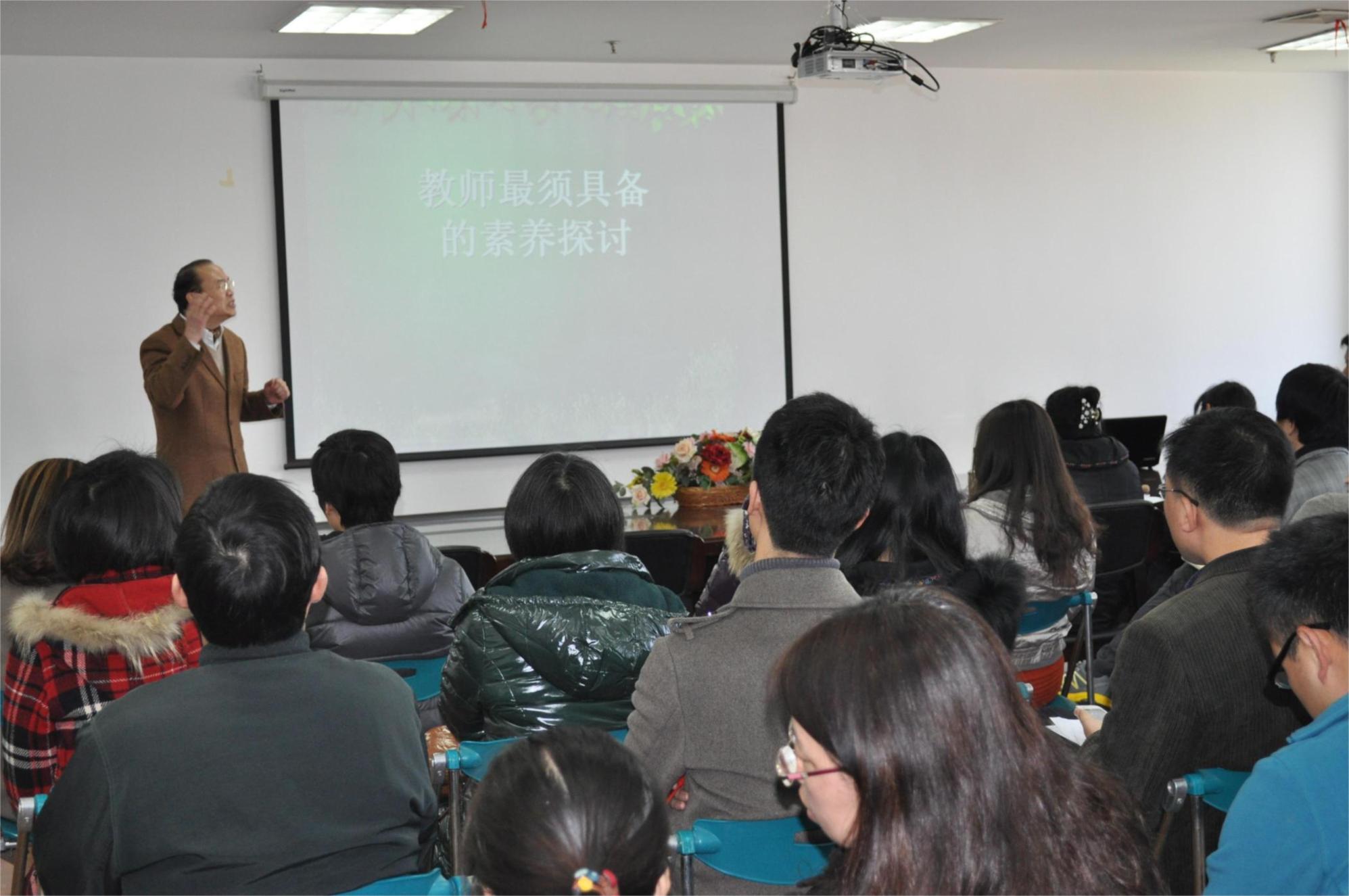 在会上,我院优秀教师代表陆文老师作了题为“高校教师职业素养”的专题报告。他从身正为范、要有爱心、更新理念和提升内涵四个方面深入浅出的对高校教师应当具备的职业素养进行报告。倡议老师们要以身作则,用自己的实际行动影响学生;呼吁教师要热爱自己的工作岗位,把教育工作作为自己一生的事业;主张从改变学生学习态度入手,培养学生主动思考的意识;建议老师们要以多领域知识为纽带,在最短的时间内获取学生的尊重与信服。老师以生动的案例、幽默的语句感染了在场的所有老师,引起大家的强烈共鸣。