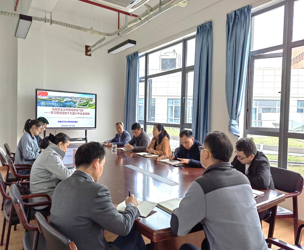11月17日,开云kaiyun官网(以下简称“机汽学院”)在交通大楼8B656召开学院中心组(扩大)学习会,学习贯彻十九届六中全会精神。此次中心组学习采取学院班子成员领学、相互交流的方式进行。会上副院长严祯荣以《马克思主义中国化新的飞跃》为题,领学学习十九届六中全会精神的学习感悟。学院中心组成员、党委委员以及支部书记参加等参加会议。会议由机汽学院党委书记虞蓉主持。