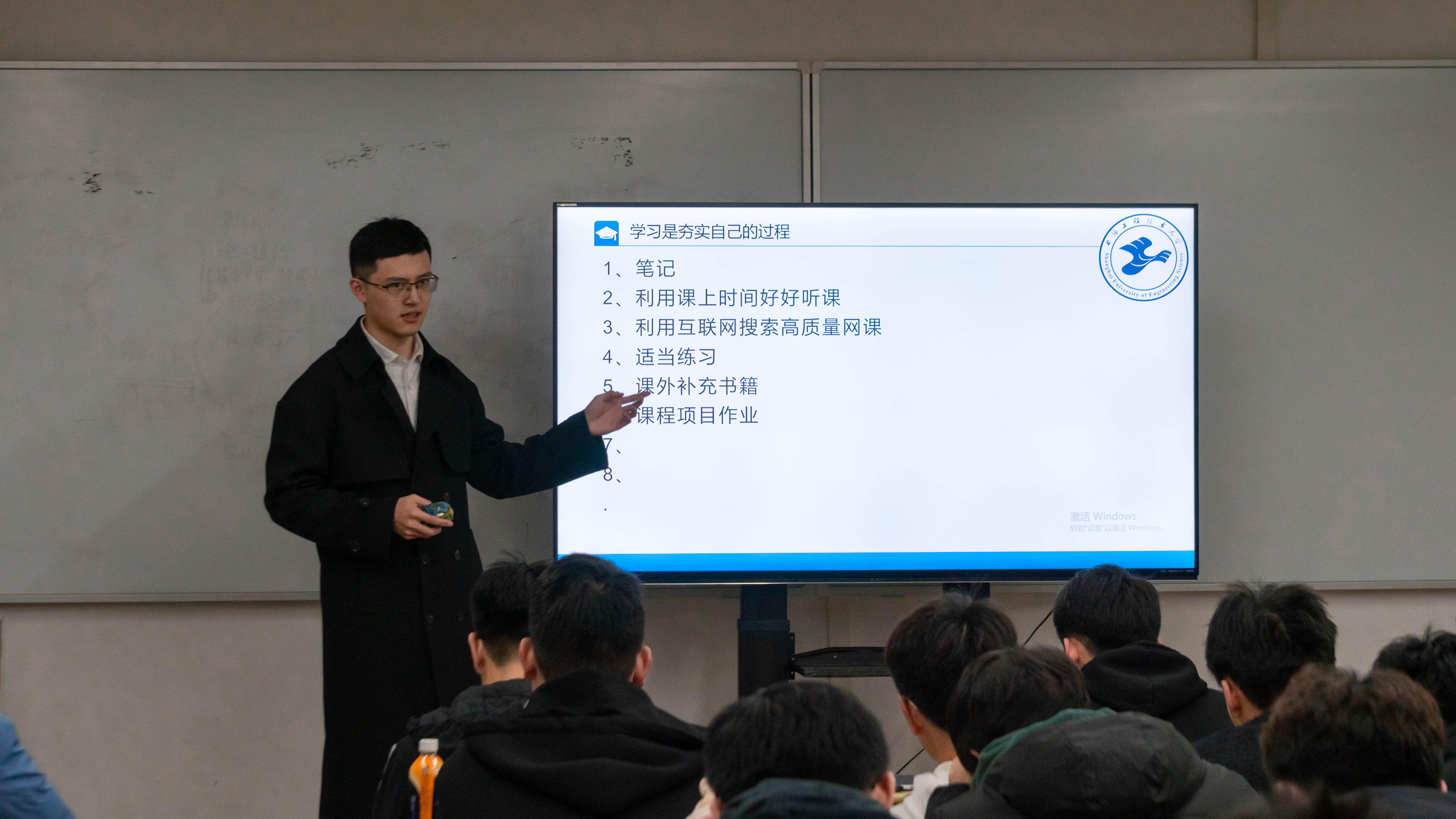 2019级汽车服务工程专业的陈存同学,为大家介绍了大学生创新实验室平台,并对在校期间如何高效率选课进行了详细的讲解,嘱托大家要善于提高学习效率,学会享受大学生活。