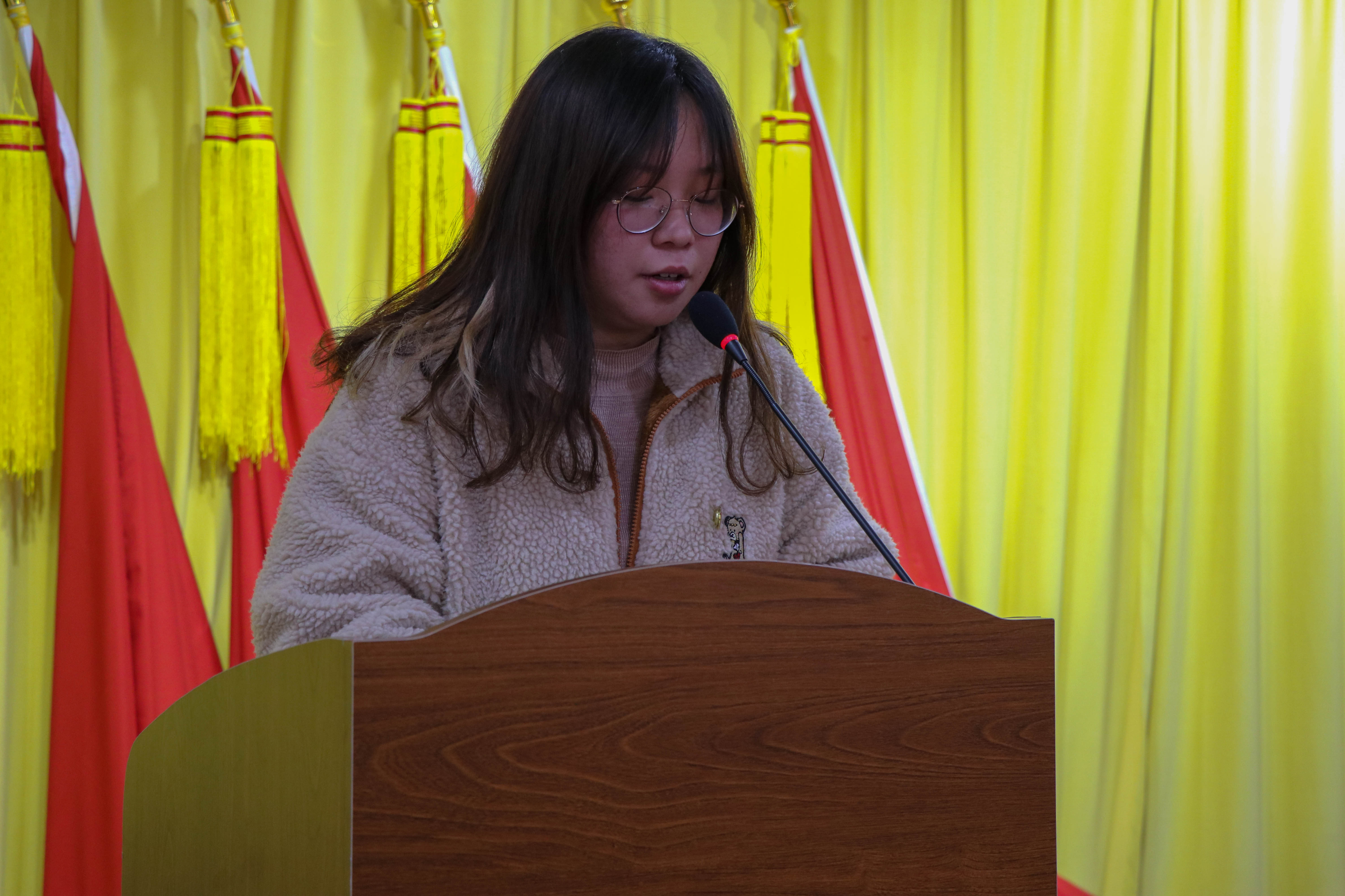 仪式在雄壮激昂的国歌声中拉开序幕。谢腾骁老师详细讲解了本期团校的教学计划与课程安排。本期团校学员代表陈贤同学进行发言表态,表示要好好珍惜此次培训机会,将理论化为实践,做好联系青年学生的桥梁和纽带。