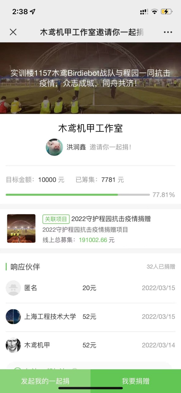 面对严峻的疫情形势,学校民主党派、统战团体第一时间响应,组织成员为学校抗疫贡献力量,成员纷纷响应号召,主动自愿向上海工程技术大学教育发展基金会捐款。民盟工程大主委、我院副院长张立强老师两次捐赠累计1240元,民盟盟员张美华老师捐赠 520元,民盟盟员、汽车服务工程系副主任骆佼老师两次捐赠累计400元,民盟盟员崔岩老师捐赠200元。学院木鸢机甲战战队师生校友们捐赠7781元;学生科创中心机械创新基地校友分会捐赠7096元,捐款达14877元,体现了学院师生的责任和担当。