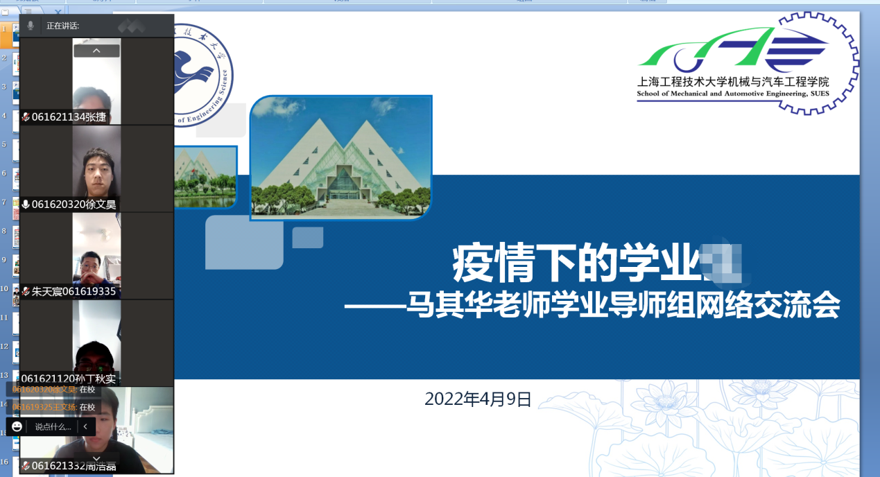 开云kaiyun官网新能源汽车技术服务教学团队根据校院两级指示精神,在疫情期间加强关心关爱学生,了解学生学业与生活情况。4月9日-10日两天,在团队负责人马其华老师的组织下,团队成员分别召开各学业导师组的学生交流沟通会,充分了解学生所需所想,对于学生所提出的问题予以回音和解答。