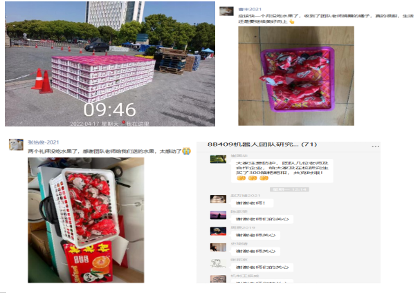 在与学生交流沟通中了解到大家近半月未吃到水果的情况后,党支部崔国华、朱姿娜、岳义、陈赛旋老师所在的智能协作机器人技术科研团队,联合长期合作企业商飞信息科技(上海)有限公司,共同向学院全体研究生捐赠了300箱共计36000元的水果,用爱心捐赠传递暖意、助力抗疫,及时解决了学生生活中的困难,受到了同学们的感谢和夸赞。