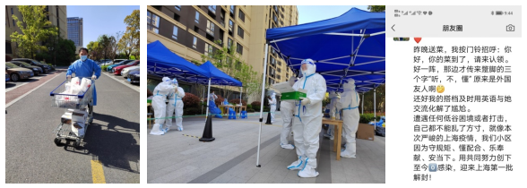 支部崔国华同志自社区报到以来,担任社区核酸检测秩序维护、物资发放志愿者,已连续进行9次志愿服务工作,累计时长60余小时。一次送菜时按门铃说了好久没应答,原来里边居住的是外国友人,崔老师及时用英语与对方沟通交流,顺利完成了送菜任务,受到了志愿者搭档的好评。