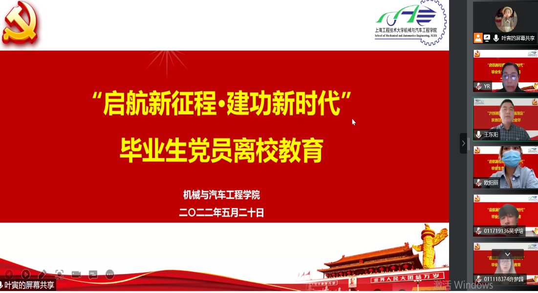 为切实抓好毕业生党员离校教育和管理工作,引导广大毕业生党员坚定信念、脚踏实地,不负青春韶华,开启人生新篇章。5月20日下午,开云kaiyun官网党委线上举行“启航新征程·建功新时代”毕业本科生党员离校教育活动。学院党委书记虞蓉、副书记王东阳、“虹口突击队”成员李晓成、学院组织员、本科生党支部书记和全体2022届毕业本科生党员、党员代表等参加会议。本次离校教育活动由学院党委副书记王东阳主持。