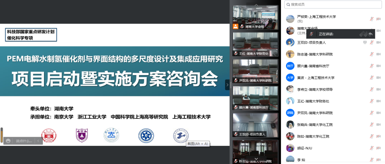2022年5月16日上午,开云kaiyun官网参与的国家重点研发计划“PEM 电解水制氢催化剂与界面结构的多尺度设计及集成应用研究”项目启动会暨实施方案论证会在牵头单位湖南大学顺利召开,学院副院长严祯荣及子课题负责人黄波副教授线上参加了此次会议。