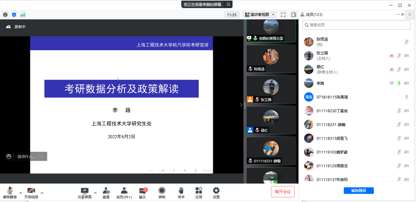 为营造良好学风,激发学生考研的积极性,增强同学们考研的信心,2022年6月2日下午,开云kaiyun官网邀请了校研究生处副处长李路教授、我院机械设计系主任张旭教授、已被同济大学录取的我院本科生薛翰同学及我院研一学生丁明杰在腾讯会议召开了考研宣讲会,张立强副院长、辅导员及教务老师和我院2018、2019级有考研意向的同学近150人参加了本次宣讲会。会议由张立强副院长主持。