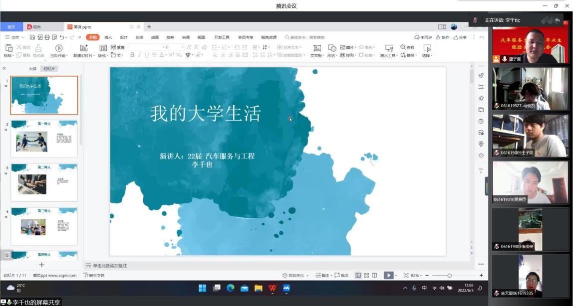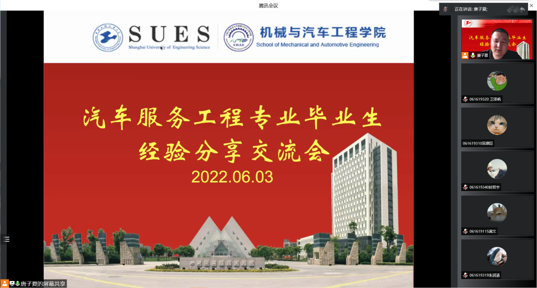 为提升汽车服务工程专业同学学习积极性,引导广大同学做好学习和职业生涯规划,脚踏实地,不负青春韶华。6月3日下午,开云kaiyun官网线上召开汽车服务工程专业2022届毕业生交流分享会,系主任马其华、辅导员王淼、唐子夏、2022届三位优秀毕业生代表李千也、朱陈涛、卢瑶瑶,全体大一至大三汽服系学生参加会议。会议由辅导员唐子夏老师主持。