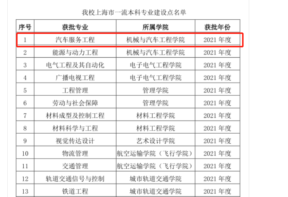 值得一提的是,近期教育部办公厅印发《关于公布2021年度国家级和省级一流本科专业建设点名单的通知》(教高厅函〔202214号)中,汽车服务工程专业顺利入选上海市一流本科专业建设点。软科专业排名与省级一流本科专业的入选,表明我校汽车服务工程专业的建设已初显成效。