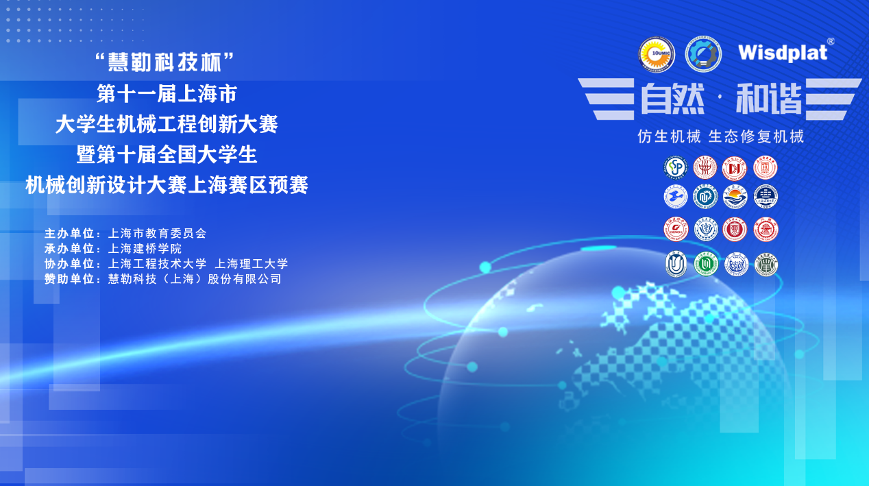 本次大赛由上海市教委主办,上海建桥学院承办,我校及上海理工大学协办,主题为“自然·和谐”。大赛共吸引包括上海交通大学、同济大学、东华大学等在内的16所高校的165支队伍800余人参赛仿生机械106项,生态修复59项;最终决胜出一等奖33项,二等奖50项,最佳创意奖作品9项,推荐国赛资格15项。