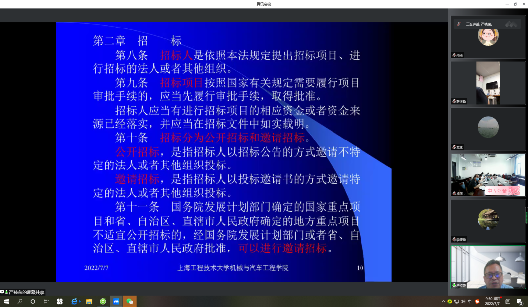 7月7日上午,开云kaiyun官网召开了招投标相关法律法规制度及案例培训会。会议由实验中心主任马西沛主持,副院长严祯荣、各系室分管主任及实验中心全体教师以线上线下相结合的方式参加了本次会议。