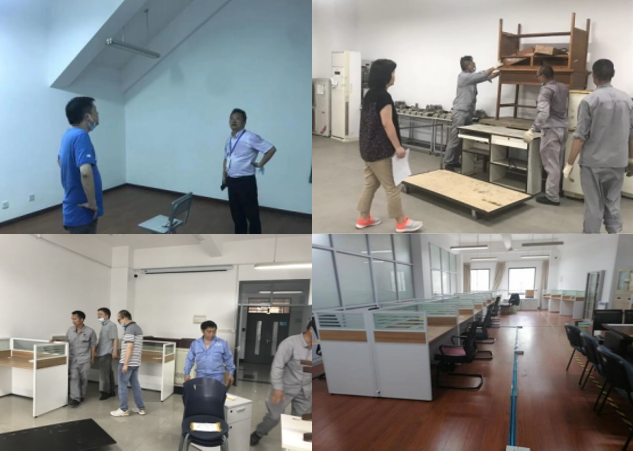 受到疫情影响,搬迁工作在今年7月进行。为了真正实现工作“精准化、合理化、科学化”,正式搬迁前,学院再次组织搬迁工作协调会,校资产处、基建处亲临学院,助力学院充分做好搬迁前腾空用房、墙面粉刷、地面平整及保洁等各项工作。学院党政高度重视行政楼搬迁工作,实地走进搬迁现场,分管院长带班驻守校内二周,实验中心、党政办党员教师们早出晚归,冒着高温酷暑,为了学院搬迁工作无私奉献,充分体现了党员的先锋模范作用;系里老师们克服了天气炎热等种种困难,以实际行动切实保障了搬迁工作的顺利进行。