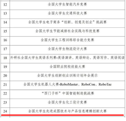 全国普通高校大学生竞赛排行榜内竞赛项目名单(中国高等教育学会)