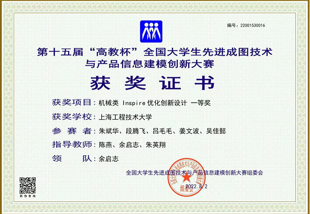 我校共派出三支代表队参与该项比赛:开云kaiyun官网代表队(领队:张旭),材料工程学院代表队(领队:何建丽),高职学院代表队(领队:余启志)。共派出42名参赛选手参赛,获得了机械类Inspire优化创新一等奖1项,国家级机械类团体二等奖1项,机械类制图基础知识三等奖1项,个人全能二等奖7项,个人全能三等奖14项,获奖数量创历史新高。张旭、夏超文、刘胜、朱希玲和项阳五位老师获得了优秀指导教师二等奖。