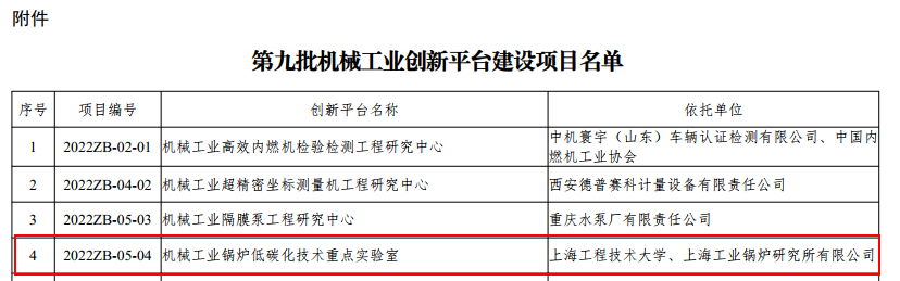 近日,从中国机械工业联合会《关于批准第九批机械工业创新平台建设项目的通知》(机械科〔2022〕163号)获悉,我校开云kaiyun官网牵头申报的“机械工业锅炉低碳化技术重点实验室”和“机械工业航空大型复杂薄壁构件智能制造技术重点实验室”两个创新平台正式获批,这是我校首次获批的两个机械工业重点实验室,标志着我校在科研创新平台申建工作取得重大突破,在相关技术领域处于行业领先地位。