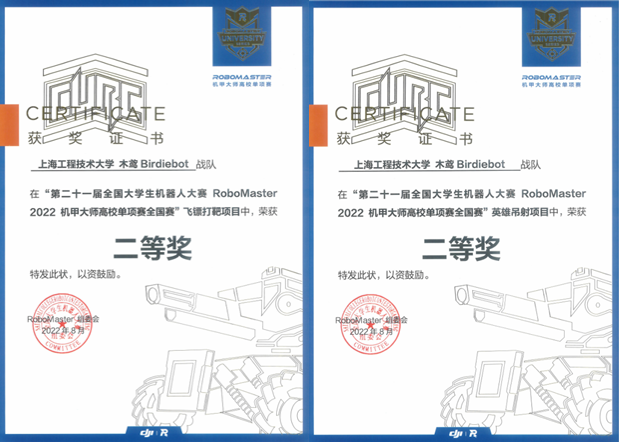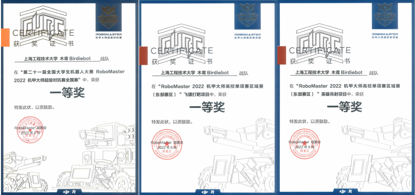 木鸢Birdiebot战队在第二十一届全国大学生机器人大赛RoboMaster2022机甲大师超级对抗赛全国赛中获得一等奖