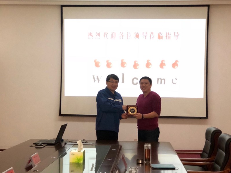 田民格校友对母校一行人员的到来表示了热烈的欢迎,他讲到曾经毕业之后给自己定下目标:一定要与时代脉搏同步。因此他会不定期回上海感受时代的发展,还会回仙霞路校区回忆在校时光。这次能和母校再次牵线成功,也希望能和母校有更多的交流和合作。会上周家樑老师展示了学校四十周年的纪录片,对学校的整体状况和校友会的发展情况做了汇报,代表学校发出邀请,邀请田总能经常回母校交流互动,并且到松江校区感受学校的新发展。王东阳老师对目前学院的基本情况做了全面的介绍,并表示校企双方可以立足各自优势,加强产学研工作和校友工作方面的合作。王润凯老师代表环境工程系向校友企业介绍了目前学校在环境工程方面的研究方向和科研成果,与企业的实际需求有很多契合之处,可以相互借力,共同发展。之后,田民格校友从企业概括、研发情况、校企合作等方面做了全面的介绍,并带领校方老师参观企业,表示希望能和母校展开更加深入的合作,共同发展、互利共赢。