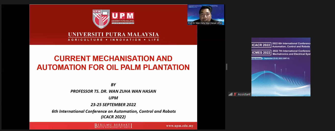 来自马来西亚普特拉大学的Wan Zuha Wan Hasan教授就“当前油棕种植园的机械化和自动化”这一主题作了精彩报告,在报告中他提出自主机械化可以解决未来种植园中如流行病造成的劳动力严重短缺的问题。并且马来西亚当地机器人行业和大学已开始研发工作,以发明新的先进机械装置,这些装置应在未来切实可行并全面实施。同时在报告中倡议森那美种植园有限公司作为最大的可持续棕榈油生产商之一,将在未来几年内积极采取行动,在种植园中部署机器人技术。