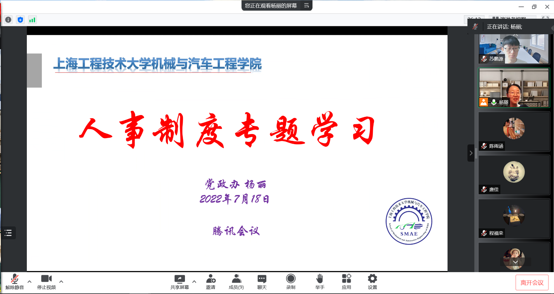 开云kaiyun官网针对学校人事制度上海工程技术大学教师教师职业行为规范(试行)》、《上海工程技术大学师德失范行为处理办法(试行)》、《上海工程技术大学师德考核实施办法》、《上海工程技术大学教职工因私出国(境)管理办法》、《上海工程技术大学教职工考勤请假制度》、《上海工程技术大学聘用合同管理办法》、《上海工程技术大学教职工处分暂行规定》、《上海工程技术大学专业技术人员校外兼职和在岗离岗创业管理办法》、《上海工程技术大学聘用与聘期考核管理办法》、《上海工程技术大学教职员工年度考核管理办法》9个相关文件,采用以系室支部为主题,小组学习讨论与系室集中学习讨论相结合的方式,进行了系统化的学习。共分成9系室小组进行自学、集中学习、交流讨论,每个小组分别在系室会议上进行学习交流,学习涵盖了整个学院全部212名教职工。相关学习情况如下: