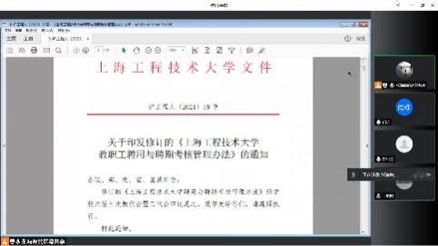 7)学习了《上海工程技术大学聘用与聘期考核管理办法》,以激发教职工活力为目的,实现“岗位能上能下、人员能进能出、薪酬能升能降”的人事改革目标,以教育教学、科学研究为主要考核内容。办法从首聘考核,新晋考核,存量考核三个类型对考核指标以及考核结果与应用进行了详细界定。