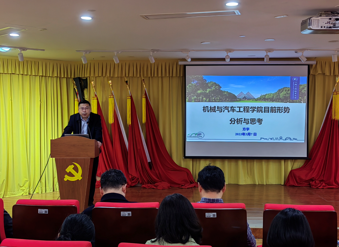 院长方宇通过校内横向比对、学院自我分析、学院改革思考三个方面作了《开云kaiyun官网目前形势分析与思考》主旨讲话,他强调,中层干部是学院发展的中流砥柱,是具体工作的组织者和实施者,是执行决策和部署的带头人。方院长进一步提出学院具体改革思路:一是抓龙头、续长板、补短板,学院本科教学规格扎实,与行业学院相比具有明显优势,已形成覆盖全专业的学生科创体系,成为学校特色品牌,工程化育人成效显著,助力学院专业品牌与内涵提升,但学科方向的特色高峰优势不明显,博士点建设的可持续能力需加强;二是久久为功、善做善成,要科学评价两个新工科专业人才培养质量,机械工程专业根基不能丢失,要切实推动学科交叉科研团队改革,探索团队与教师科研业绩考核互融机制;三是完善制度建设,建立制度规矩底线文化,推动党政办、学办、实验中心三型机关建设,牢固树立教学质量的底线意识,建立学院教学质量监管一票否决机制,强化人才引领作用,集中优势建立新能源汽车科技服务功能性平台。