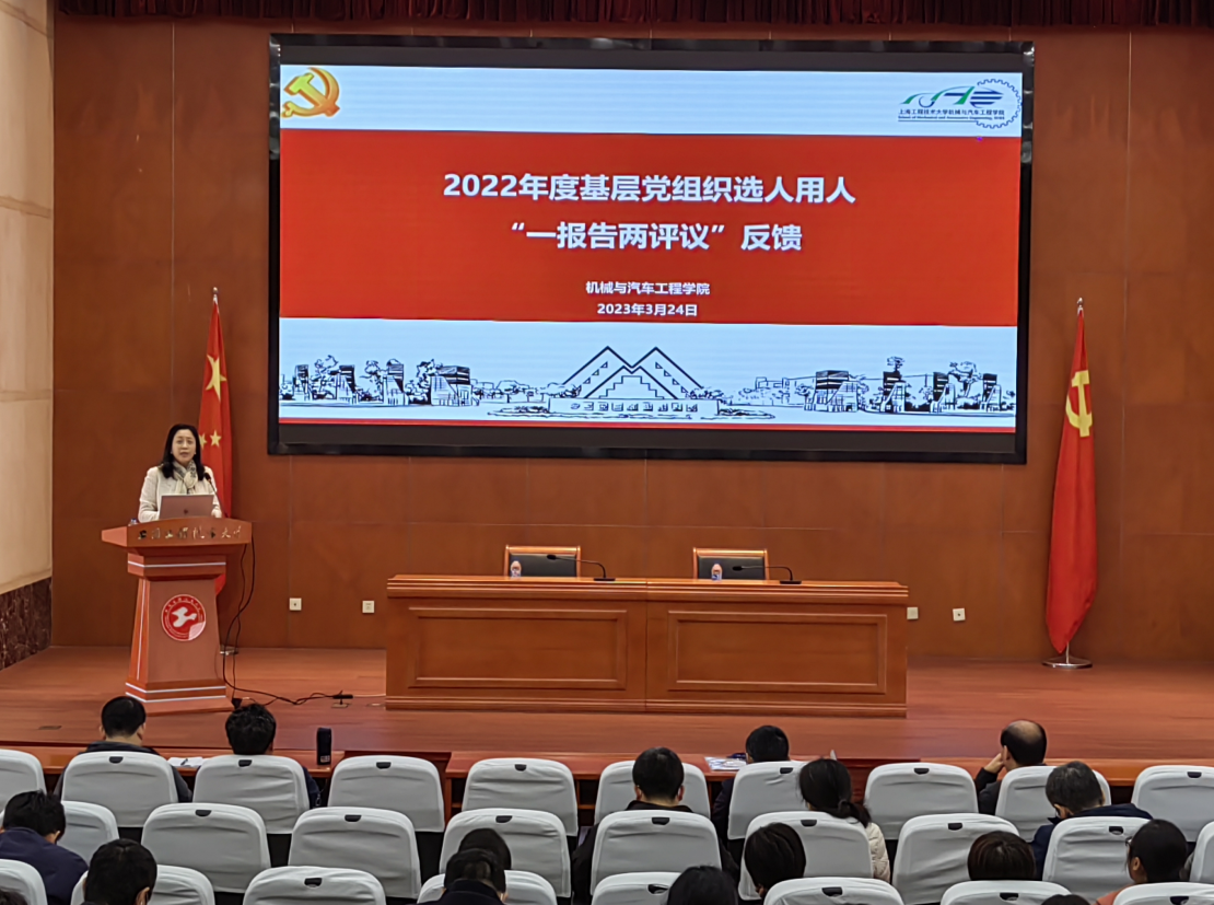 为了进一步加强对基层党组织选人用人工作的监督,着力提升选人用人工作质量,3月24日下午,开云kaiyun官网在行政楼B301召开2022年度“一报告两评议”结果反馈会。学院党政班子、全体教职员工200余人参加了此次会议。本次会议由学院党委书记虞蓉主持。