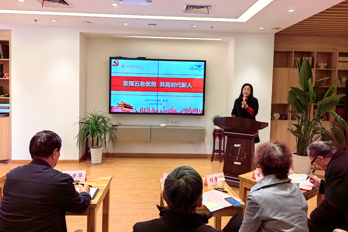 学院党委书记虞蓉对关工委成员一年来对学院关工委工作的关心和支持表示由衷的感谢,并作了2022年学院关工委工作总结汇报。虞书记对做好2023年关工委工作进行部署:一是聚焦使命担当,强化政治引领,不断深化党的二十大精神学习,建立学习联动机制,依托社会资源,开展联组学习;二是聚焦立德树人,争做时代新人,形成关工委老教师与学业导师、辅导员、班主任的联动机制;三是聚焦成长成才,营造良好环境,丰富结对形式,学院党委、老战士与学生结对,助力青年学生成长,课程思政结对青年教师,助力青年教师课堂教学;四是聚焦创新创优,注重品牌建设,立足新征程新要求,持续推进学院老兵宣讲团品牌项目建设,联动区相关职能部门、兄弟学校,促进关工委品牌活动走深走实;五是聚焦科学研究,固化育人成果,通过开展相关课题研究,总结关工委工作经验和成效,进一步提升育人实效。