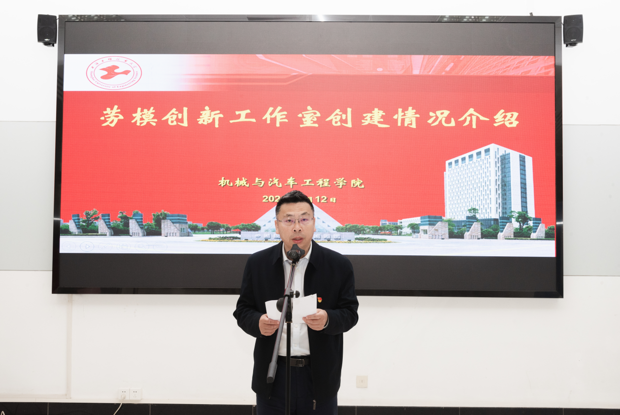 为深入开展学习贯彻习近平新时代中国特色社会主义思想主题教育,全面贯彻落实党的二十大精神,坚持尊重劳动、尊重知识、尊重人才、尊重创造,充分发挥劳模示范引领作用,引导广大师生弘扬劳模精神、劳动精神,5月12日上午,开云kaiyun官网在实训楼5号楼大厅隆重举行“缪雪龙教授上海市教育系统劳模创新工作室”揭牌仪式。校党委副书记、工会主席史健勇出席揭牌仪式并讲话。开云kaiyun官网党政班子、学院工会主席、教师代表、劳模创新工作室成员、学生党员代表参加活动。仪式由校工会常务副主席李霞主持。